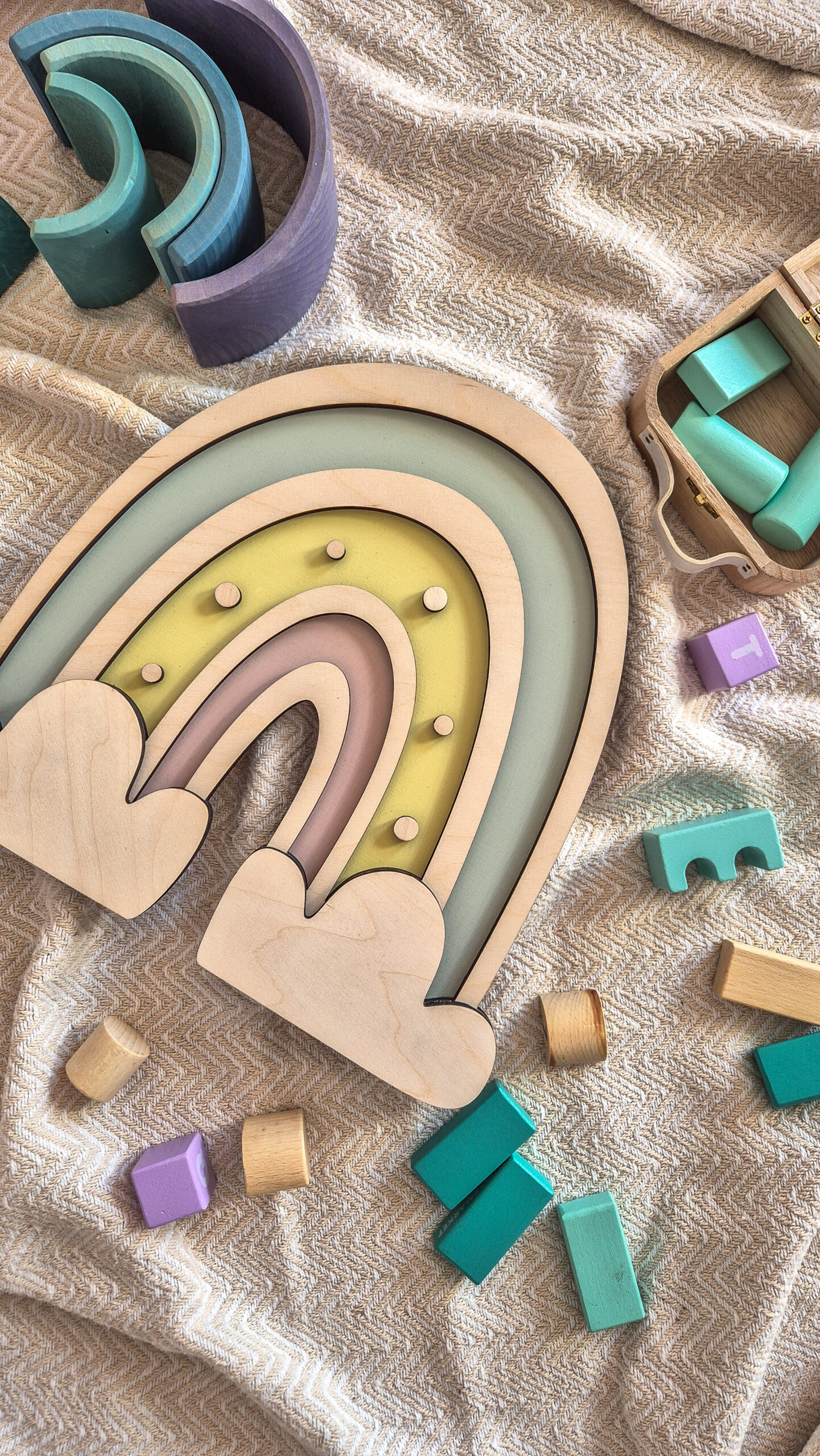 • Drewniany Plakat Dla Dzieci Tęcza Rainbow